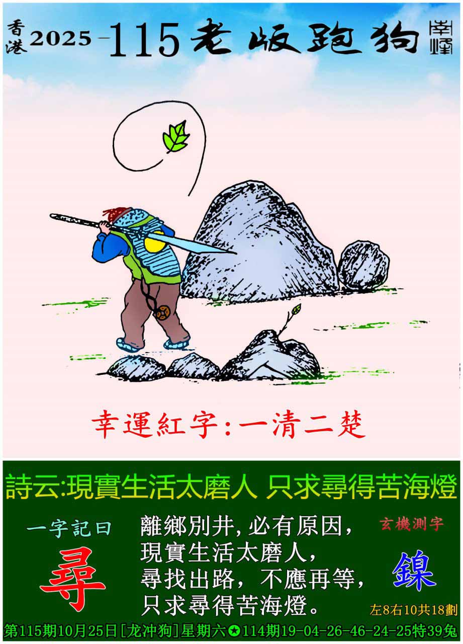 主题 :115期老版跑狗一字記之曰:【尋】 玄機測字:《鎳》