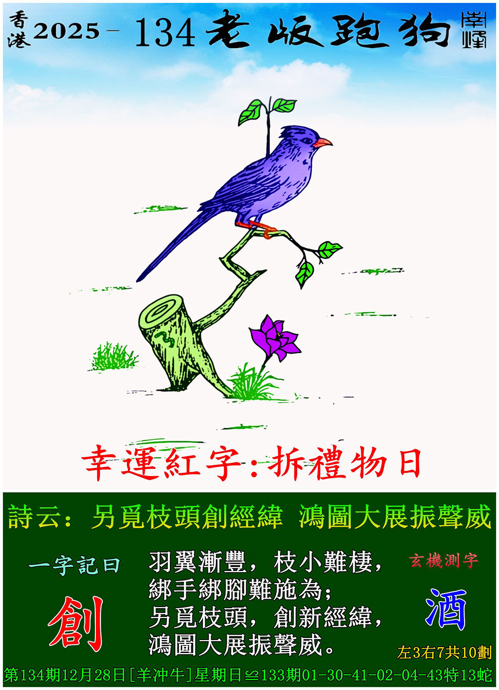 主题 :134期老版跑狗一字記之曰:【創】 玄機測字:《酒》