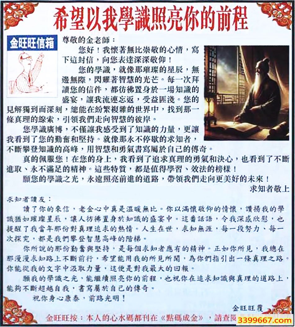 | 主题 :080期:金旺旺信箱彩民推荐→→《希望以我學識照亮你的前程》 |