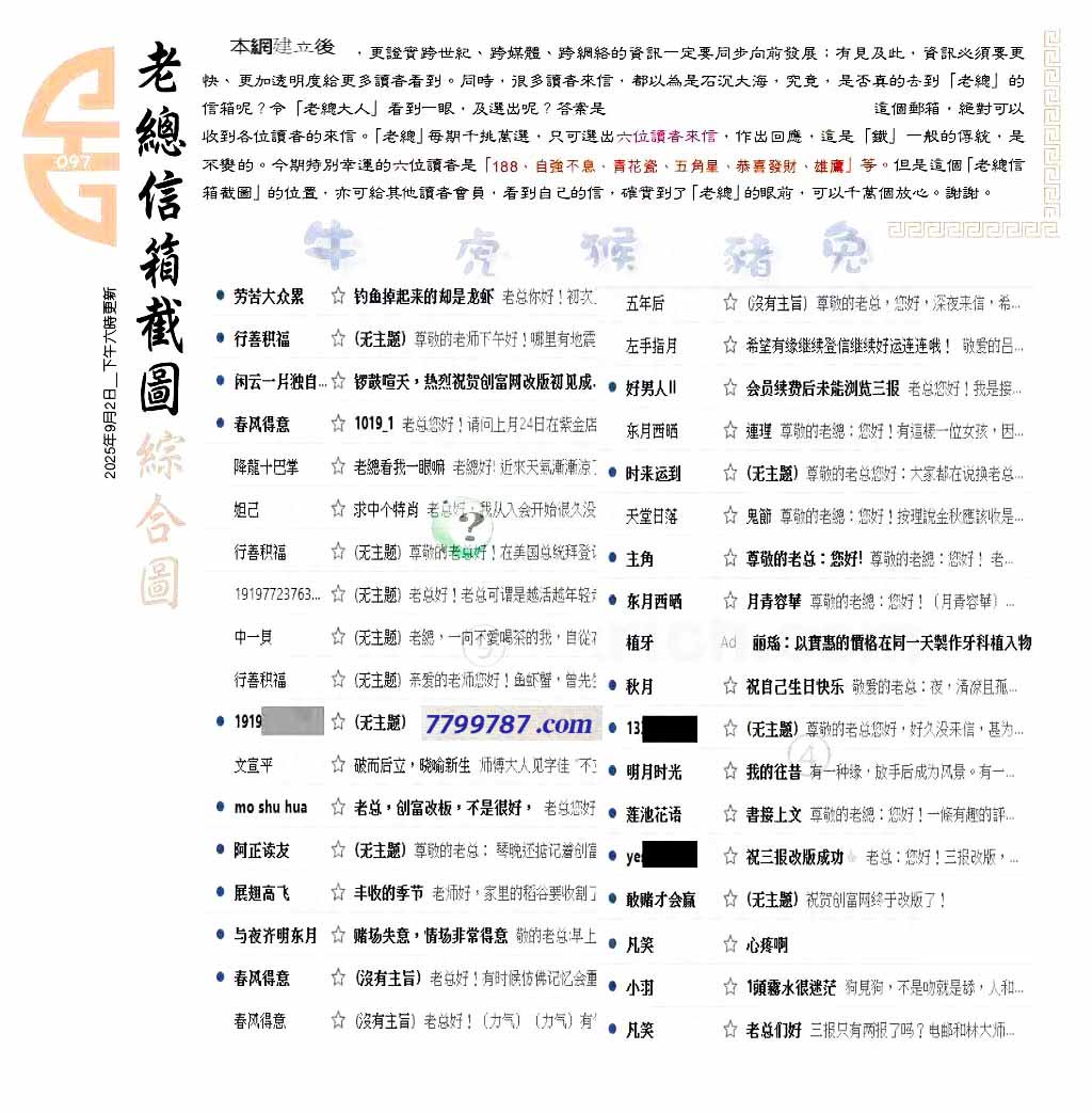 主题 :097期:六合皇金句/老总论码/萧公子/林大师/五行夺码/老总信箱截