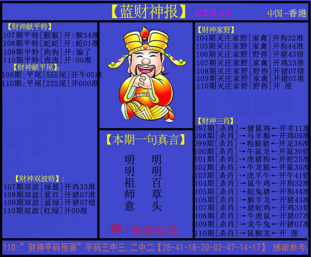 主题 :110期:蓝财神 |
