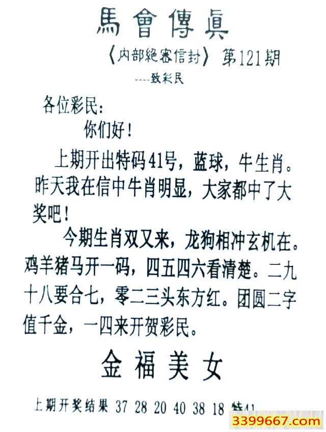 121期:首发推荐:≮馬會傳眞≯→(香港正版)