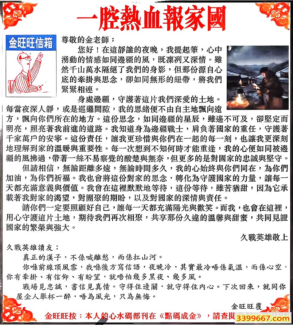 主题 :124期:金旺旺信箱彩民推荐→→《一腔熱血報家國》