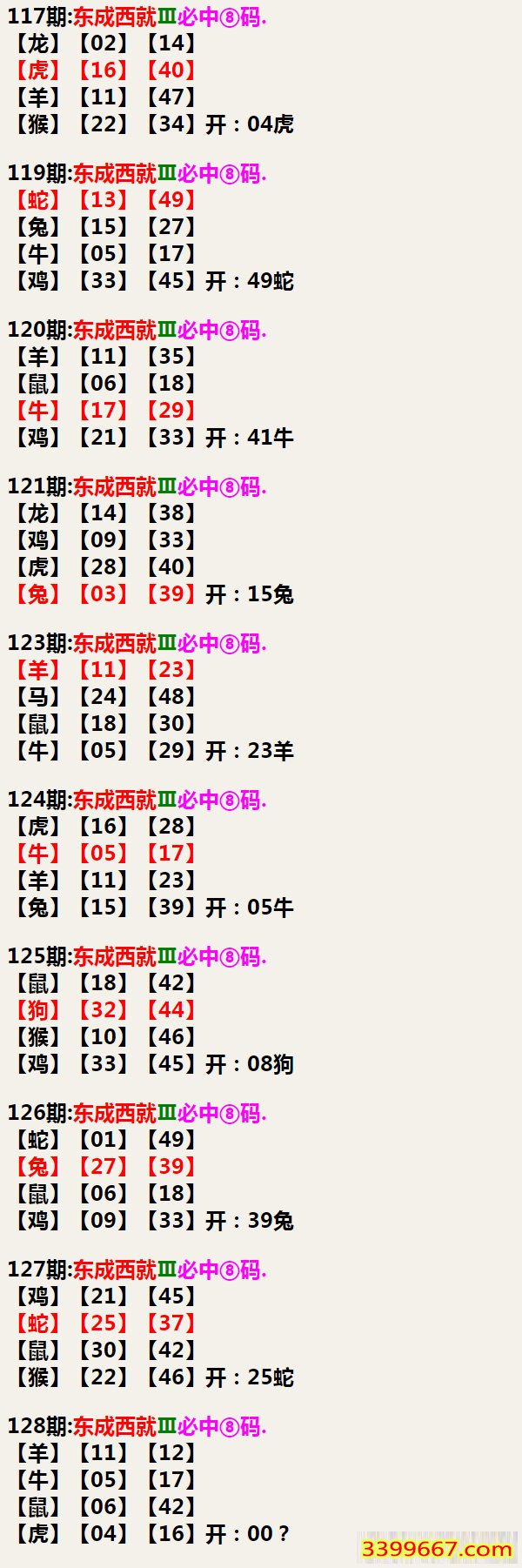 128期:东成西就Ⅲ必中⑧码