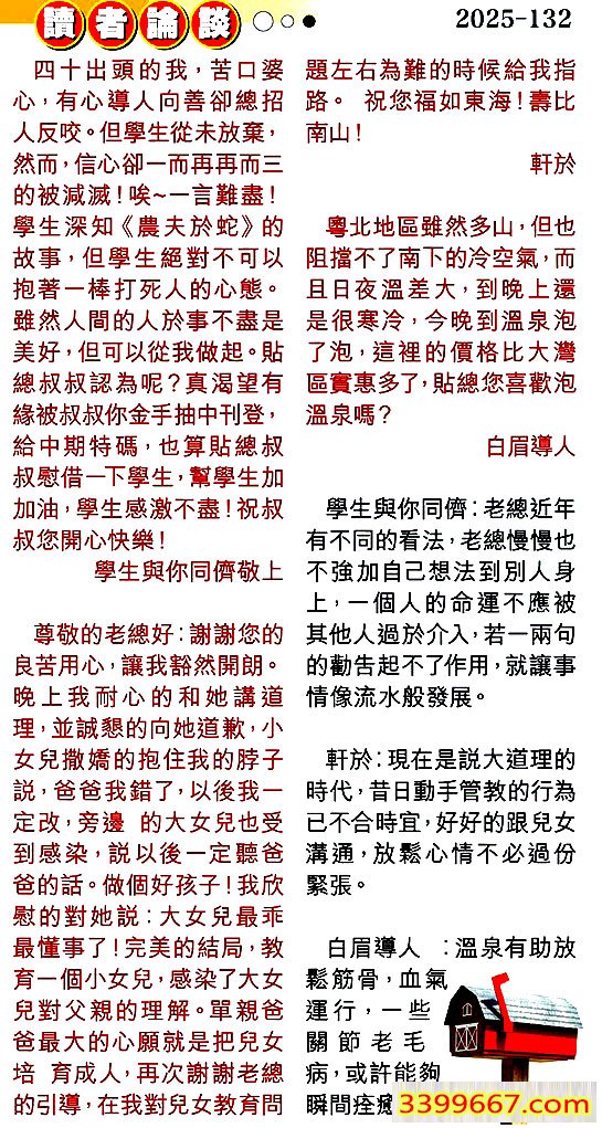 主题 :132期:彩民推荐〖貼信讀者論壇〗