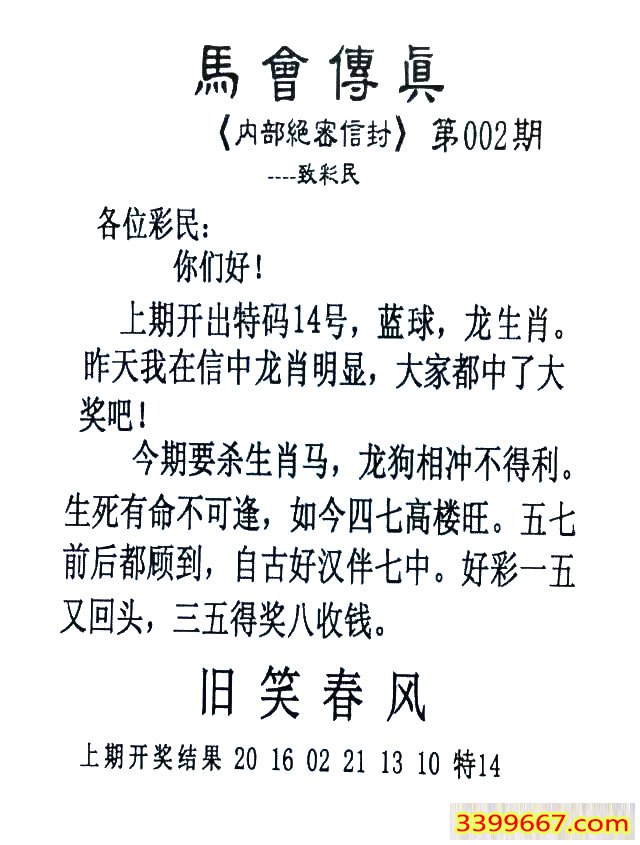 | 主题 :002期:首发推荐:≮馬會傳眞≯→(香港正版) |