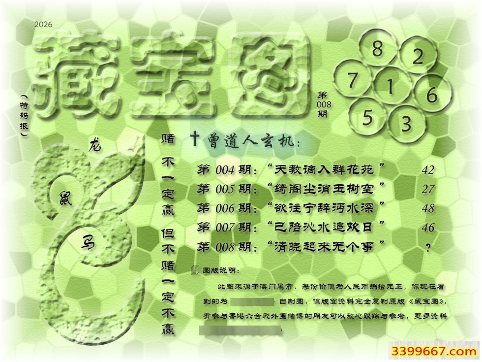 | 主题 :008期藏寶圖 新:清晓起来无个事 老:自说孤舟寒水畔 禁:牛 禁:4尾 |
