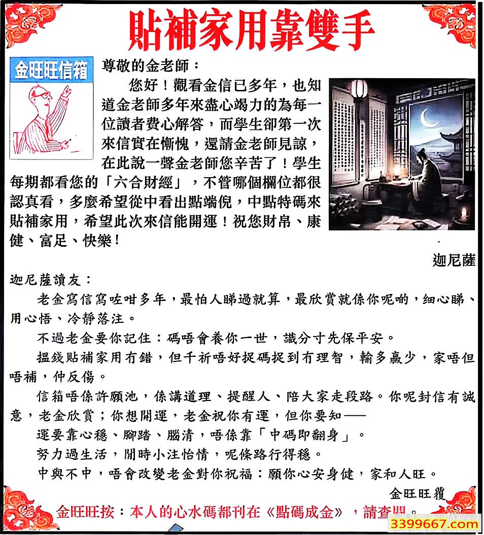 116期:金旺旺信箱彩民推荐→→《貼補家用靠雙手》