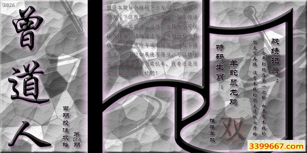 | 主题 :014期藏寶圖 新:但觉山光侵酒绿 老:溪涧岂能留得住 禁:牛 禁:3尾 |