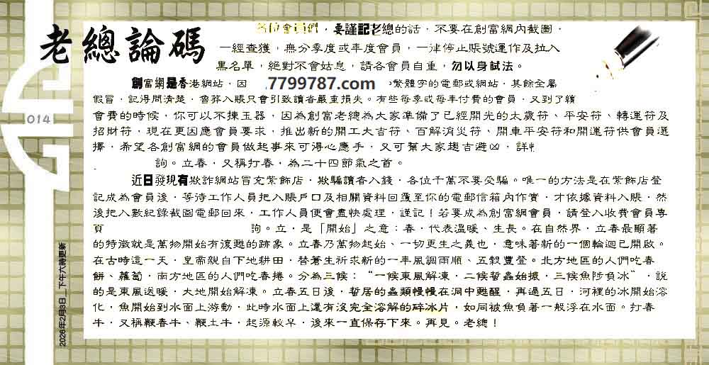 014期:六合皇金句/老总论码/萧公子/林大师/五行夺码/老总信箱截