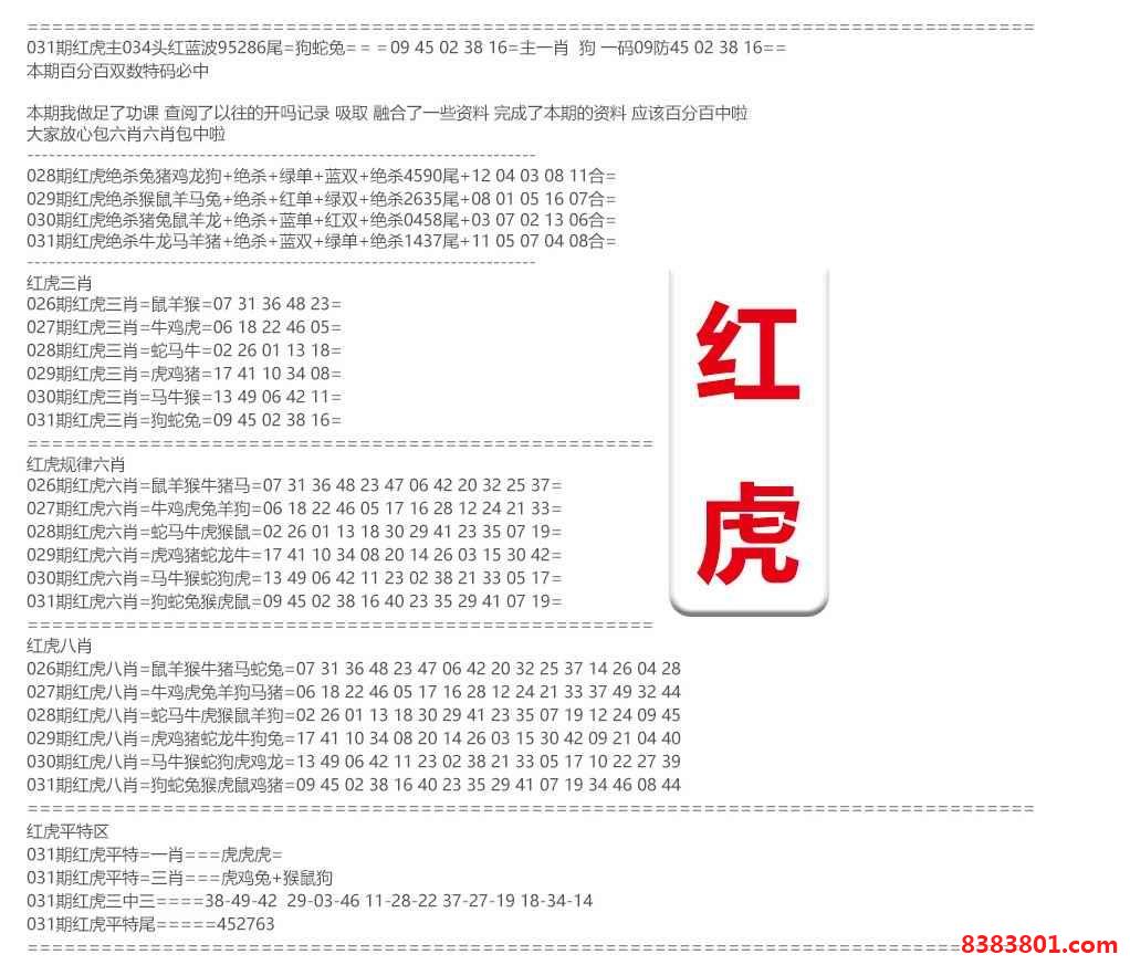031期:红虎资料