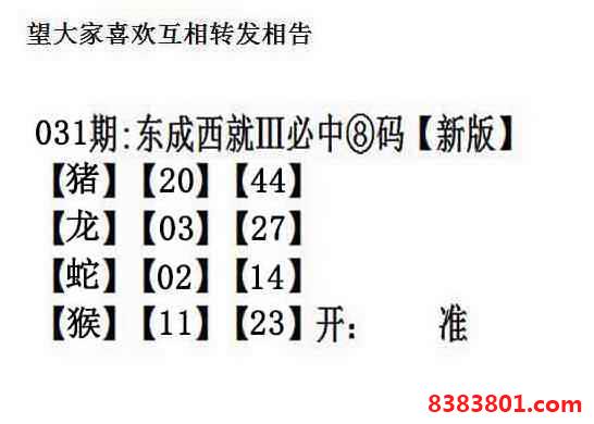主题 : 031期:另版【东成西就四肖8码】