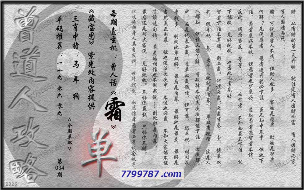 主题 : 034期藏寶圖 新:瘦影自临春水照 老:诗卷长留天地间 禁:鸡 禁:0尾 玄機字:《霜》